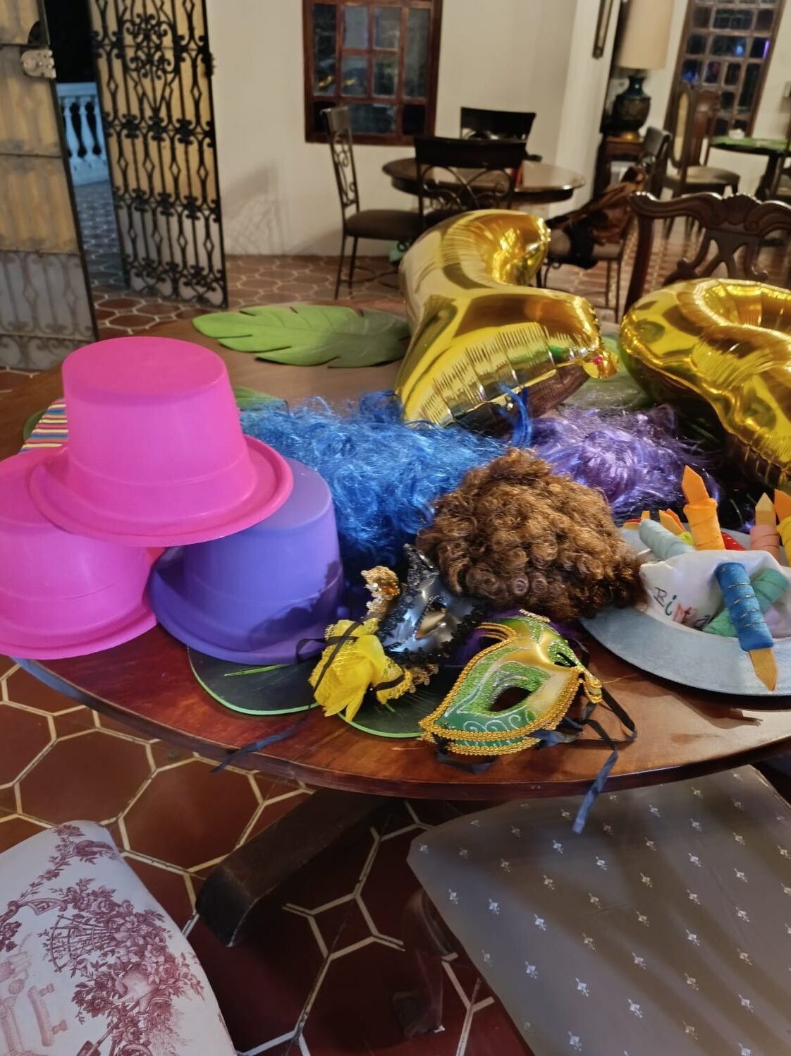 – Inlcuye accesorios para fotos: sombreros, corbatas, pelucas, antifaz, lentes, etc.